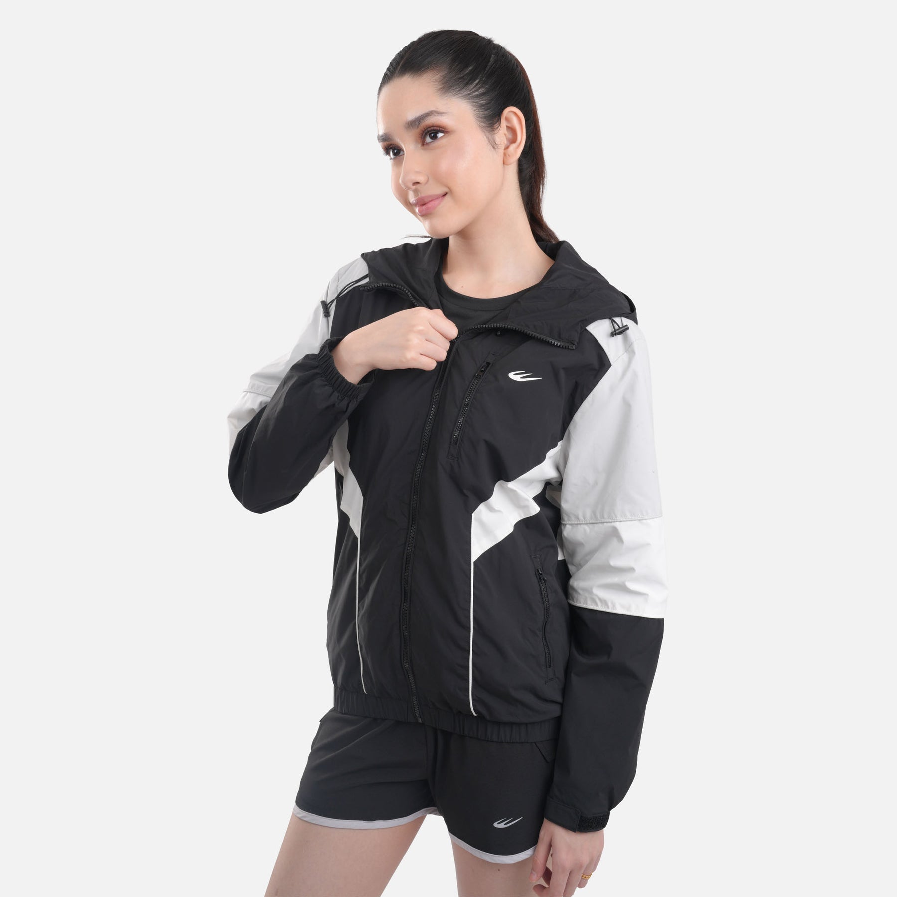 The adjustable hood adds an extra layer of protection, allowing you to customize your coverage and shield yourself from unexpected drizzles or windy conditions. The full-zip front makes layering simple, while side pockets hold your essentials. Elasticized hem and cuff to ensure a secure fit.
