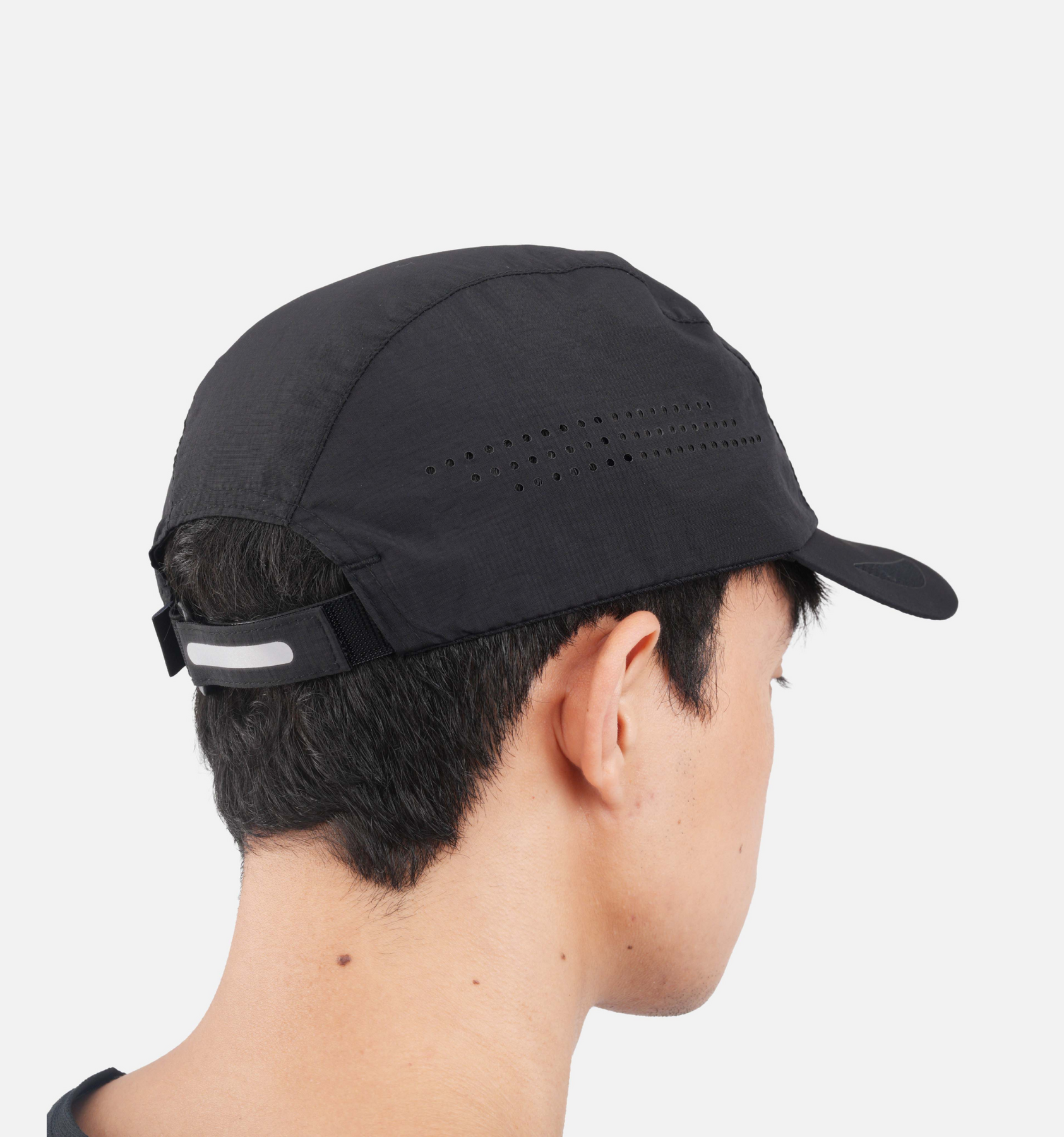 Reflective details along the Velcro closure at the back enhance visibility in low-light conditions.