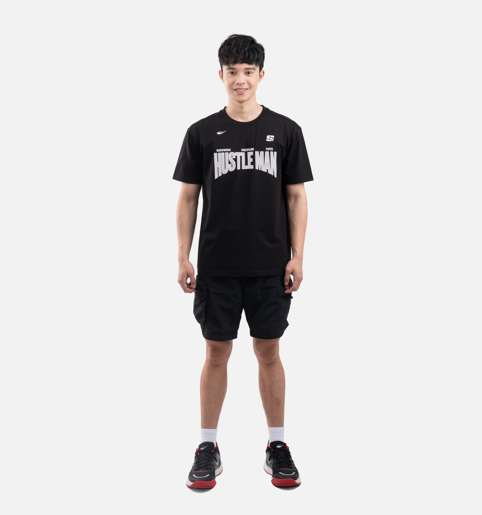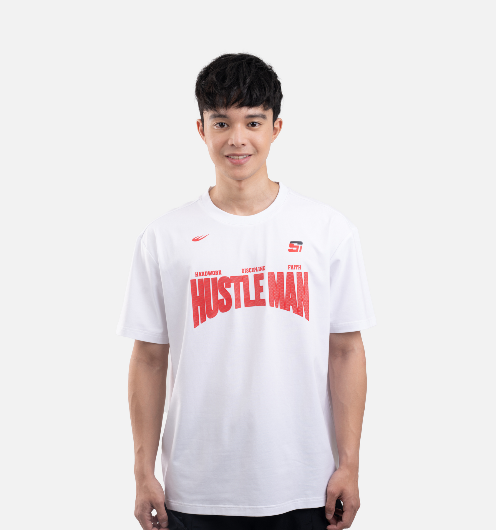 The tee displays a special print of his moniker, “HUSTLE MAN,” on the
